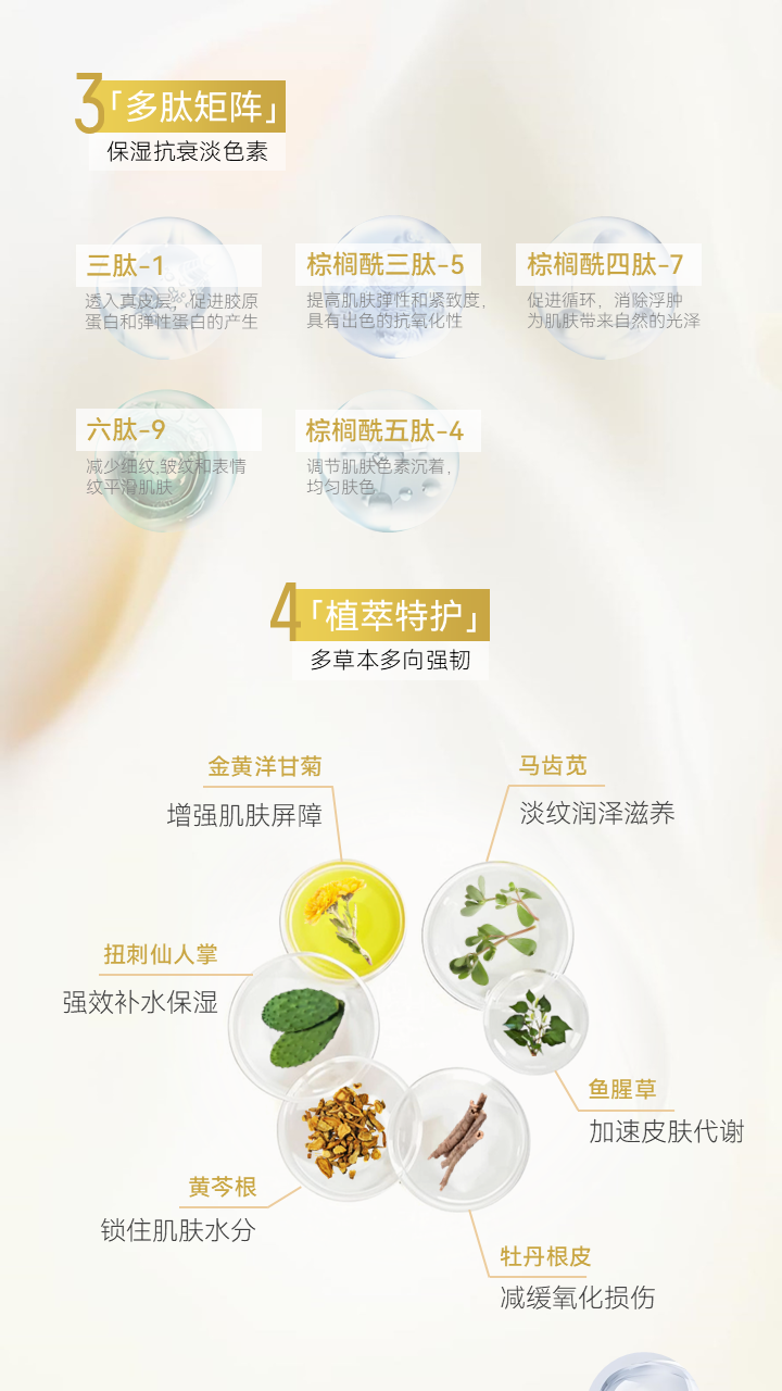 天姿蕉顏煥顏精華液 醫(yī)美系列產(chǎn)品 閱讀 2024-01-18 天姿蕉顏煥顏精華液,蘊(yùn)含三肽-1、六肽-9、棕櫚酰三肽-5、棕櫚酰五肽-4、棕櫚酰四肽-7等多種肽類,甄選天然植物大蕉果、金黃洋甘菊、牡丹根皮、扭刺仙人掌莖、馬齒莧等多種植萃精華。